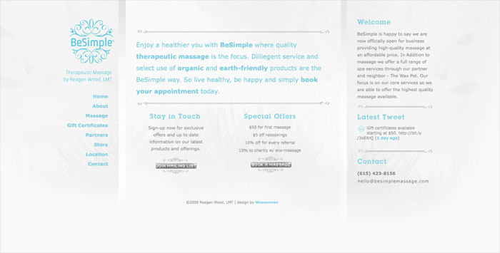 New website designed for BeSimple just launched. The site is part a larger eco-friendly campaign and uses carbon neutral hosting. please visit besimplemassage.com [+].