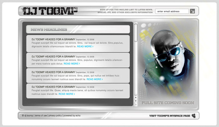 Just launch my new personal site that has info on all my projects including my new tshirt designs. please stop by. elijahwasserman.com [+].